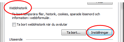 Klicka nu på Inställningar under Webbhistorik