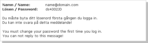When you click the Continue button e-Avrop sends an e-mail with temporary login details to your inbox.