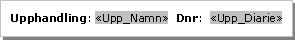 fungerar på samma sätt som kopplingarna i När du redigerar ett kopplat dokument under Dokument/Projekt visas fältet med kopplingens namn i dokumentet. Exempel koppling: